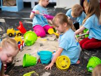 Dziecko w piaskownicy rozwija zarówno małą, jak i dużą motorykę. Przesypywanie, formowanie czy uklepywanie piasku pomaga ćwiczyć mięśnie dłoni oraz palców. Z kolei przenoszenie jego większych ilości, kopanie czy budowania angażuje całe ciało, wspierając ogólny rozwój fizyczny. W Przedszkolu Niepublicznym Śmieszek, żeby mieć piaskownicę pod ręką, przenieśliśmy ją do jednej z sal.